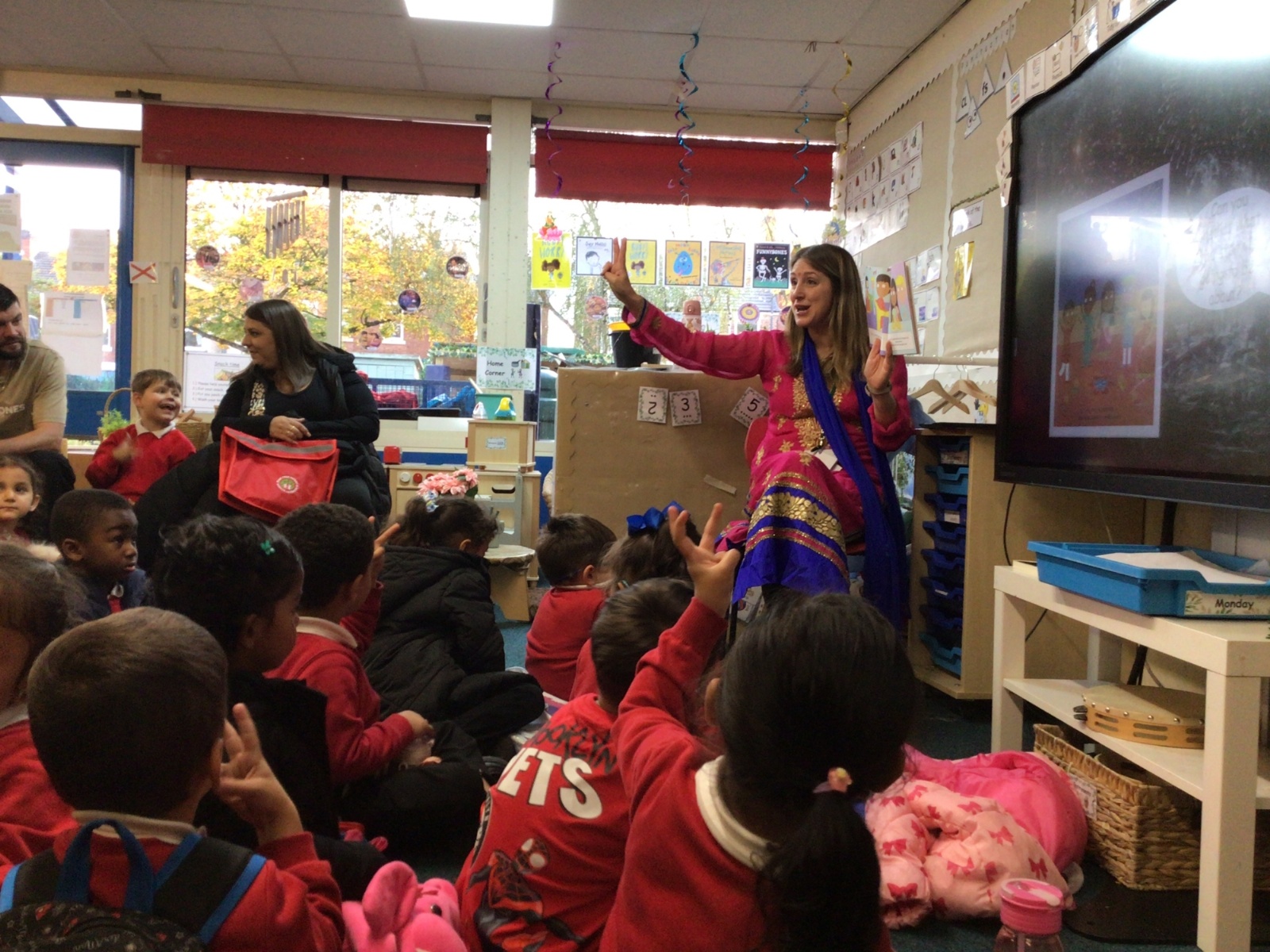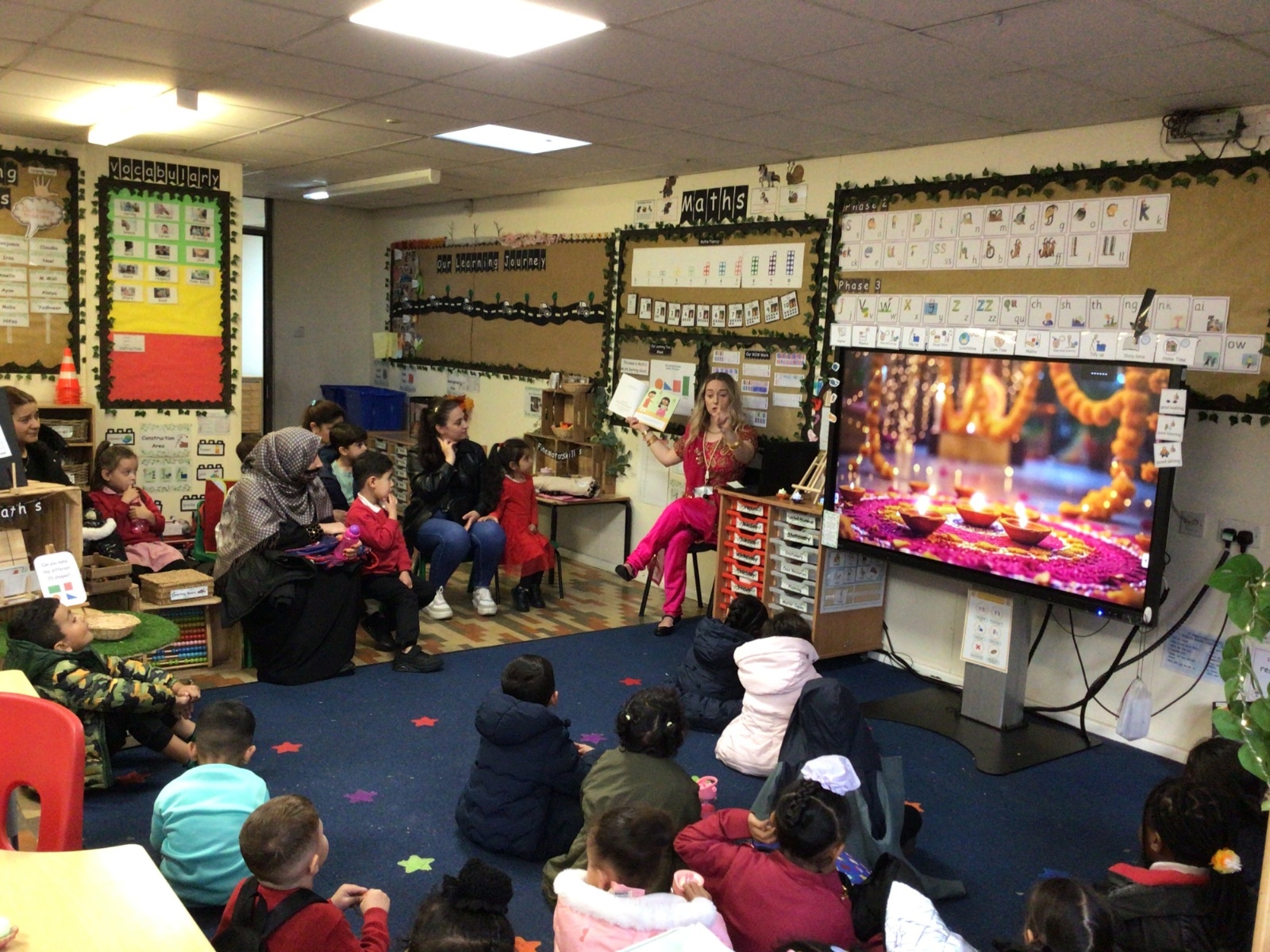 The children listened to 12 Days of Diwali.