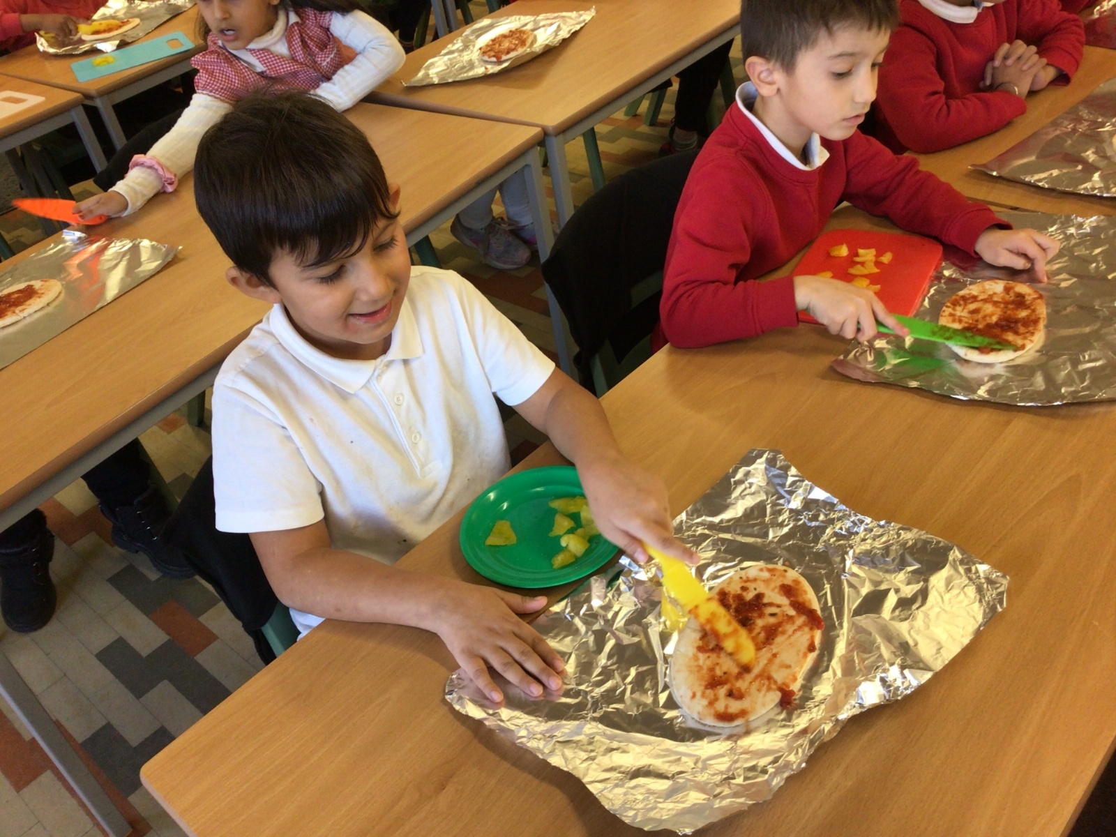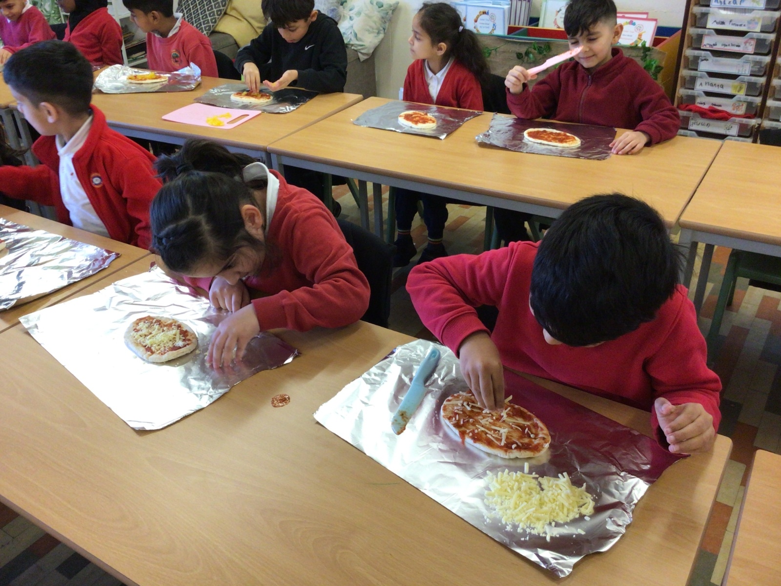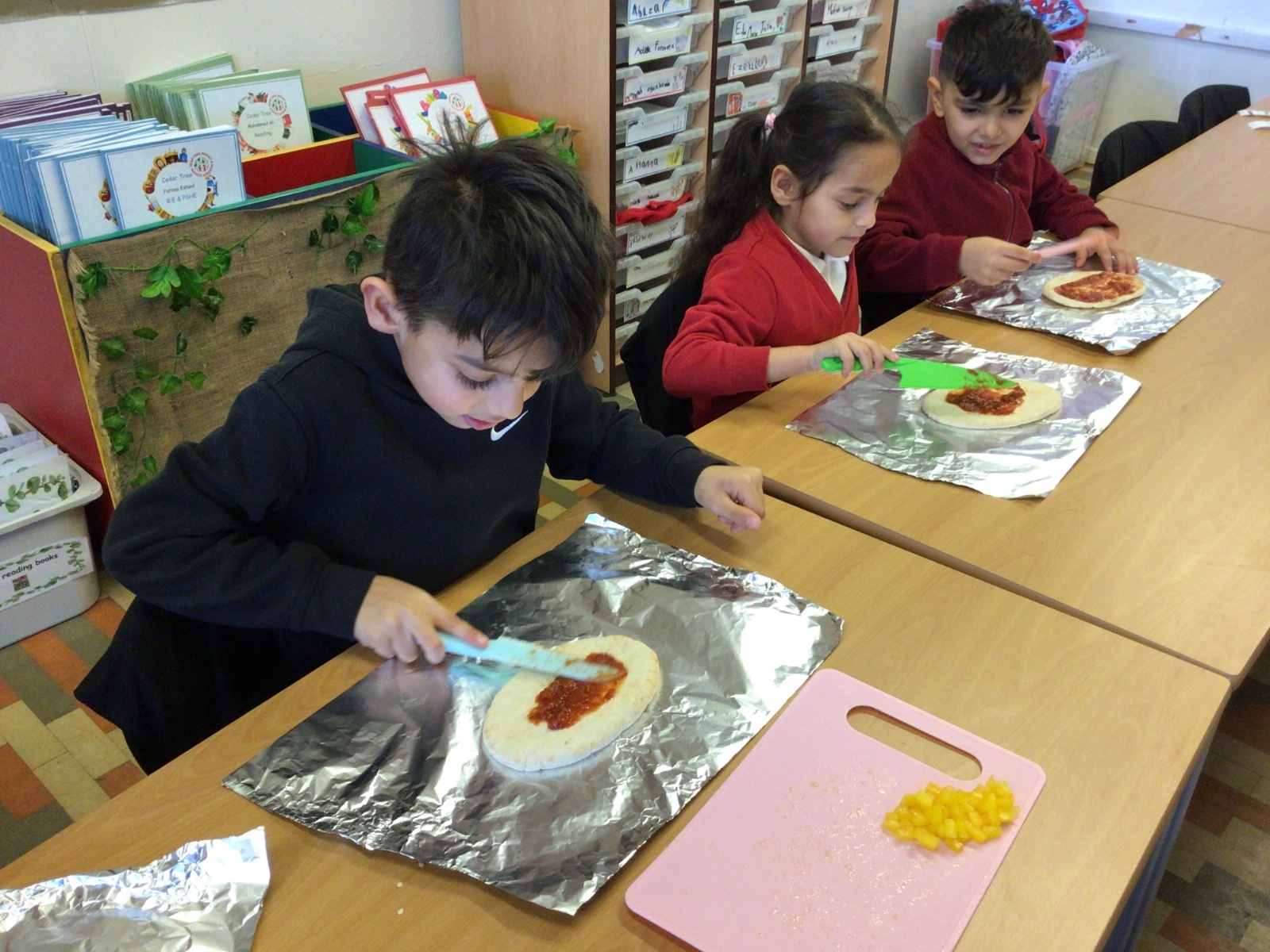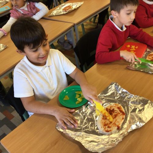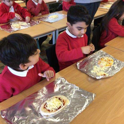 The children have been following instructions to make pizza's.