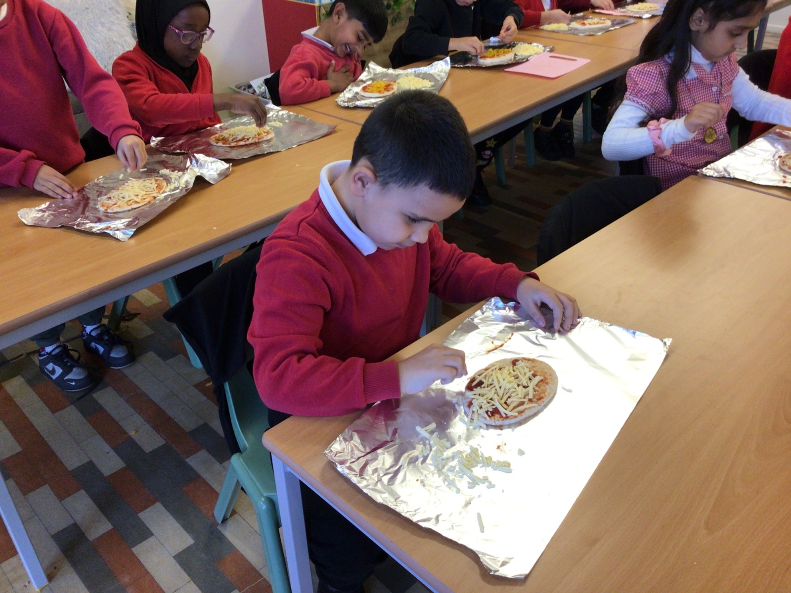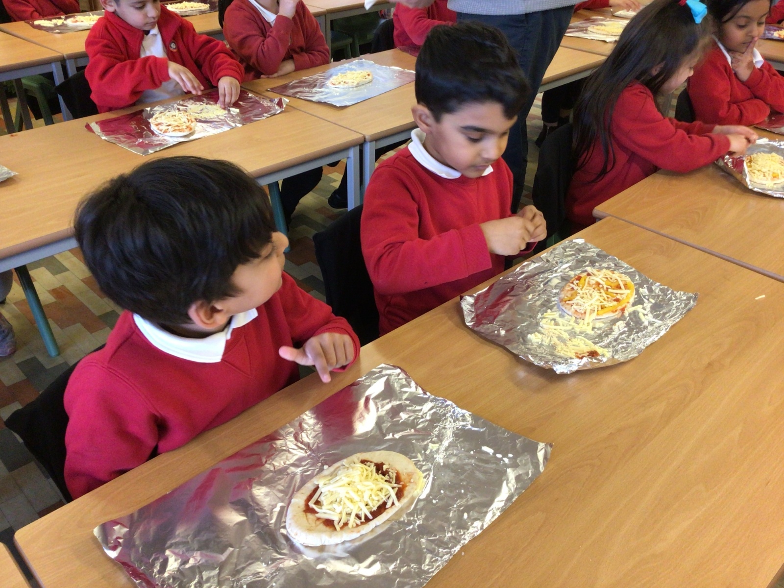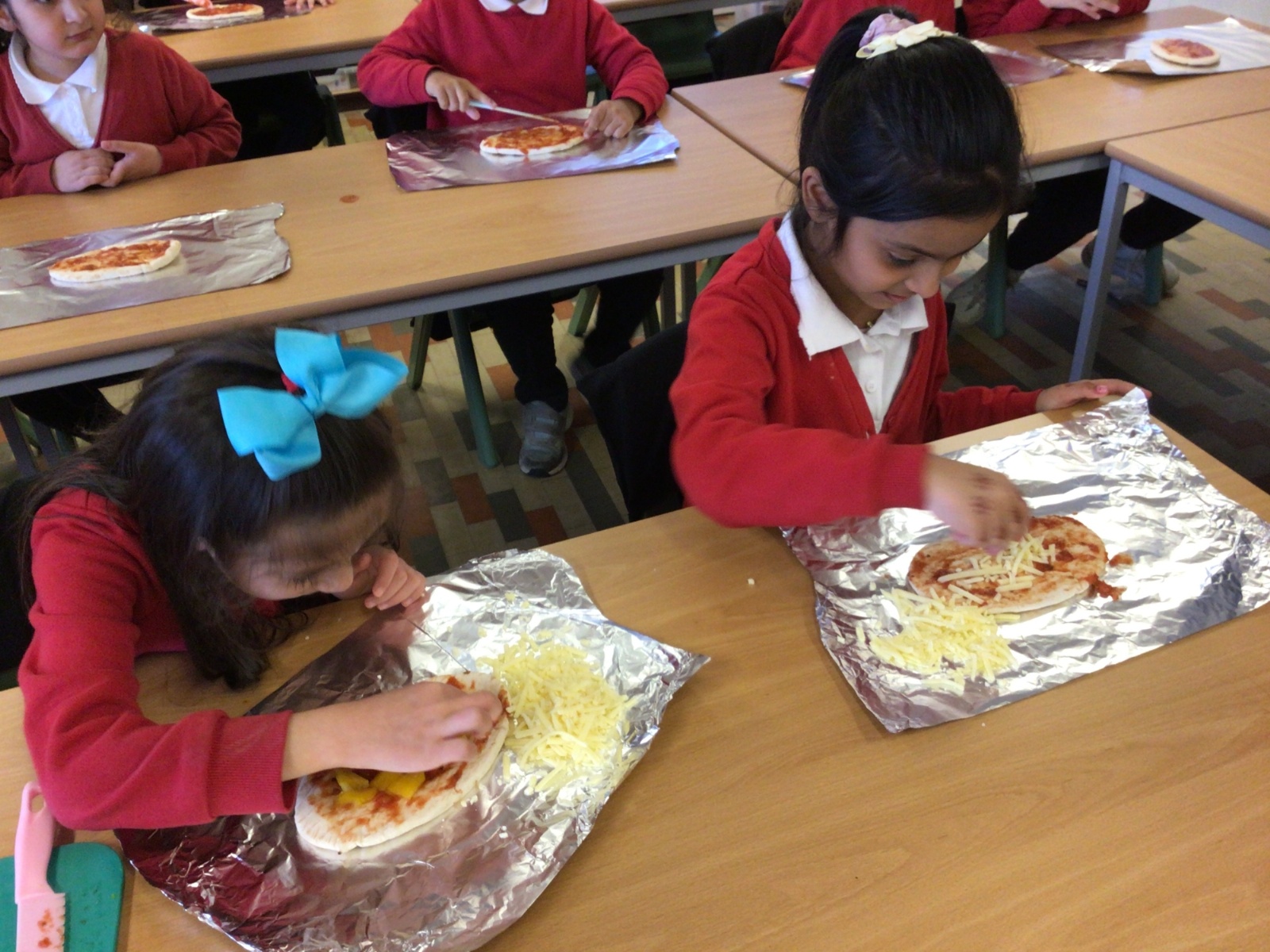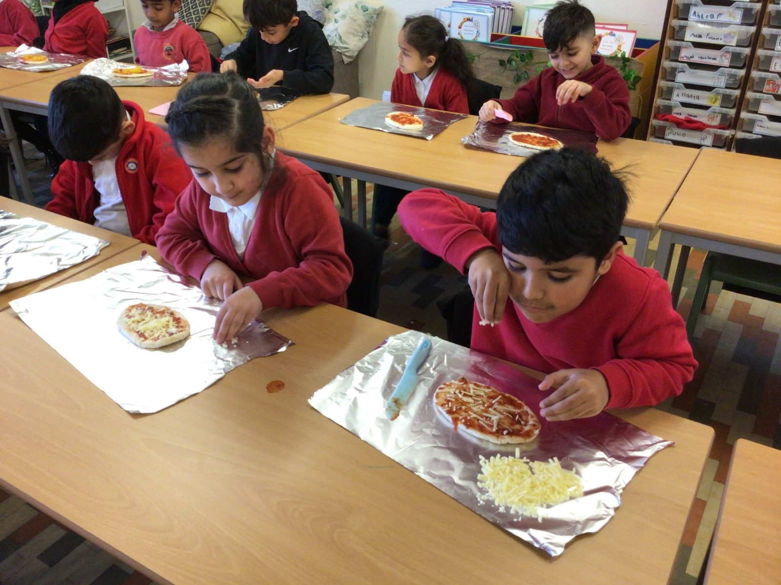 The children have been following instructions to make pizza's.