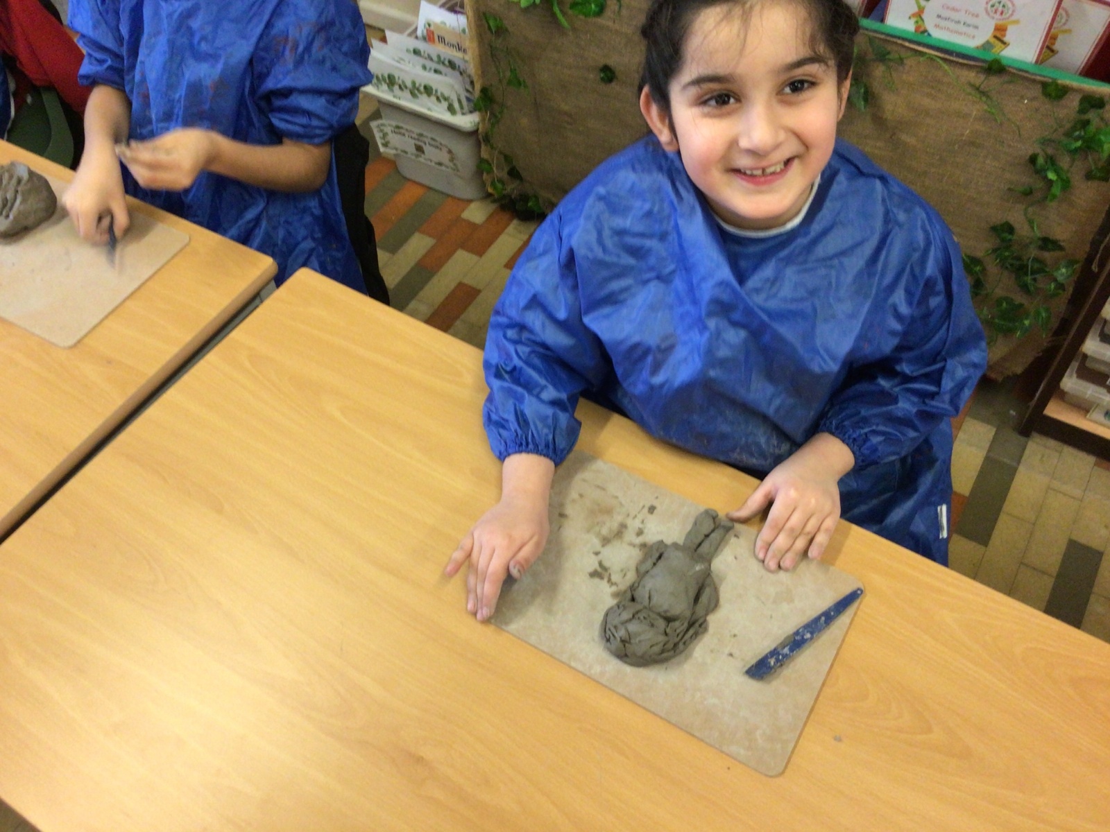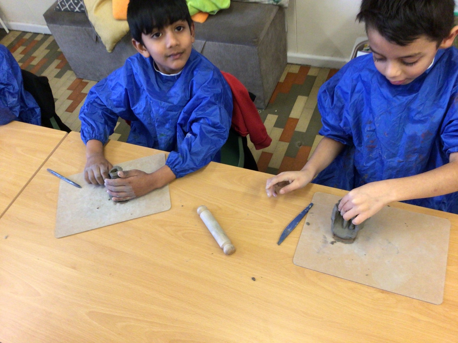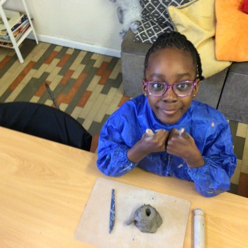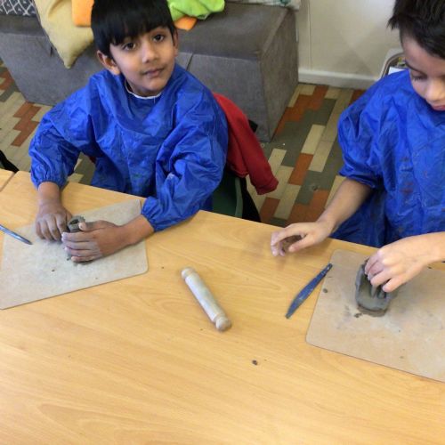 The children used clay to make castles and towers.