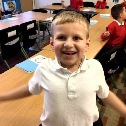We had some Jewish artifacts in school and the children got the opportunity to see and try them on.