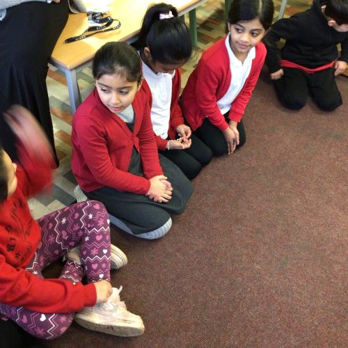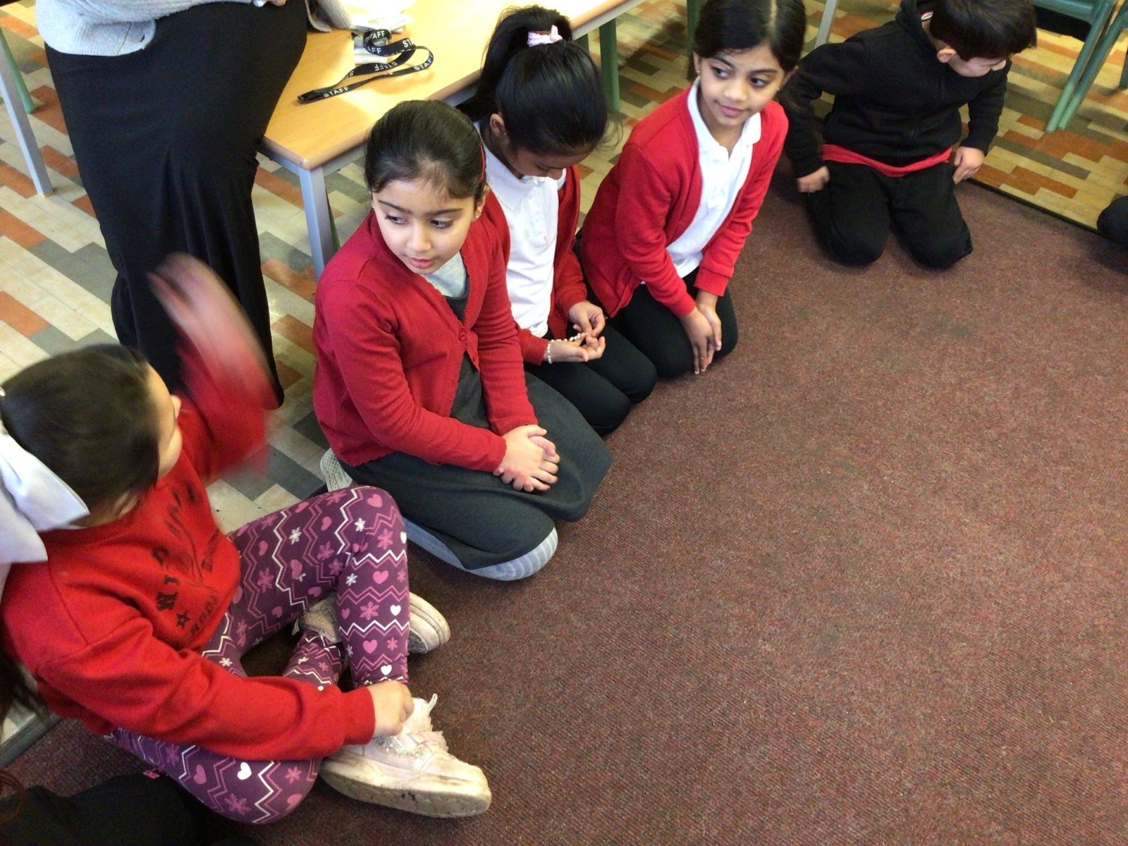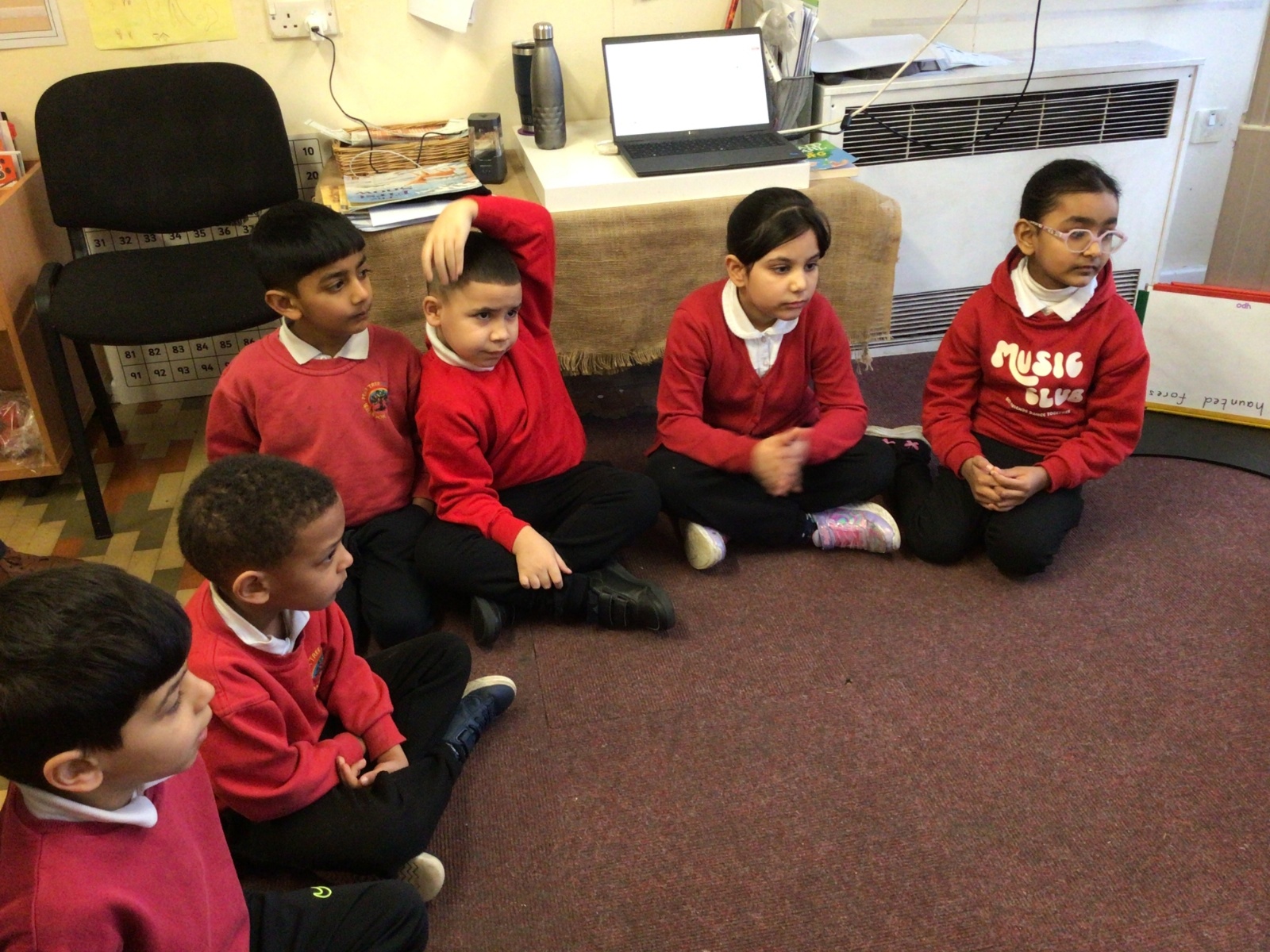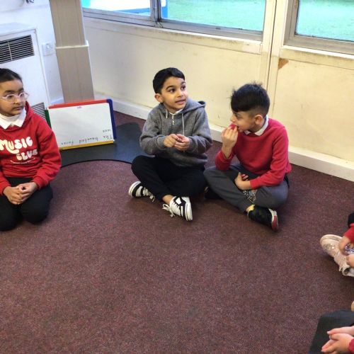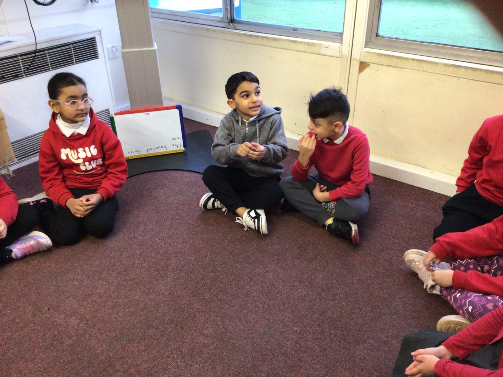The children sat in their talking trios to "talk".
