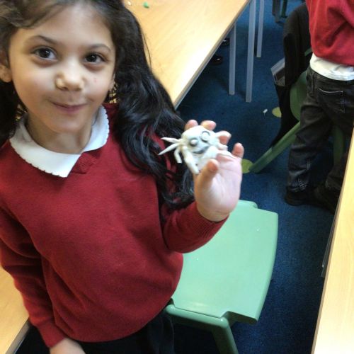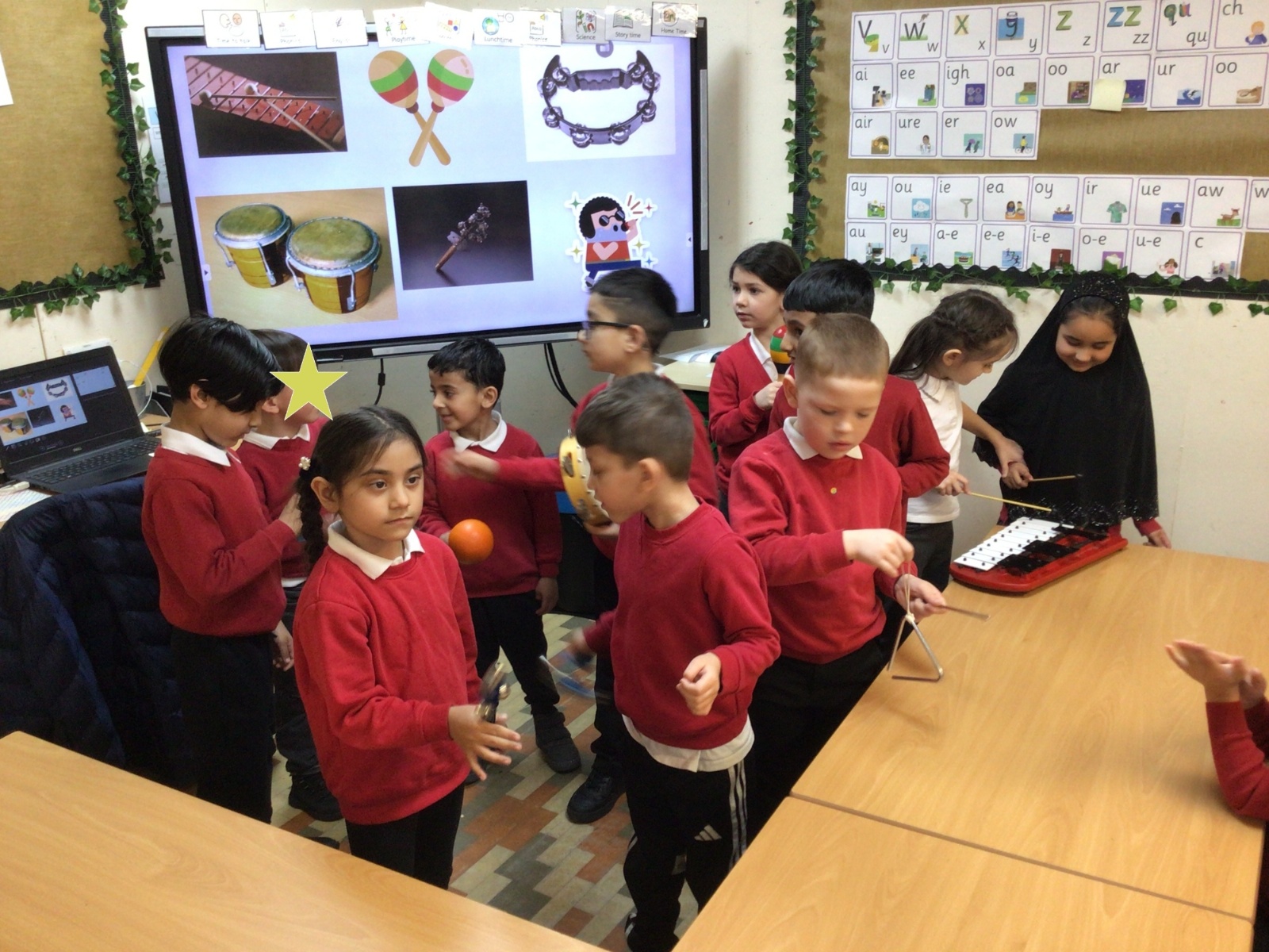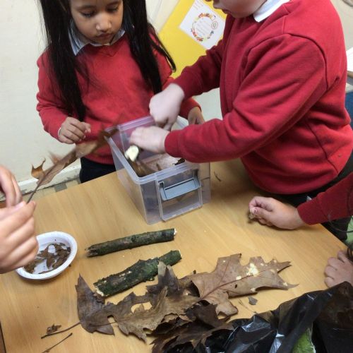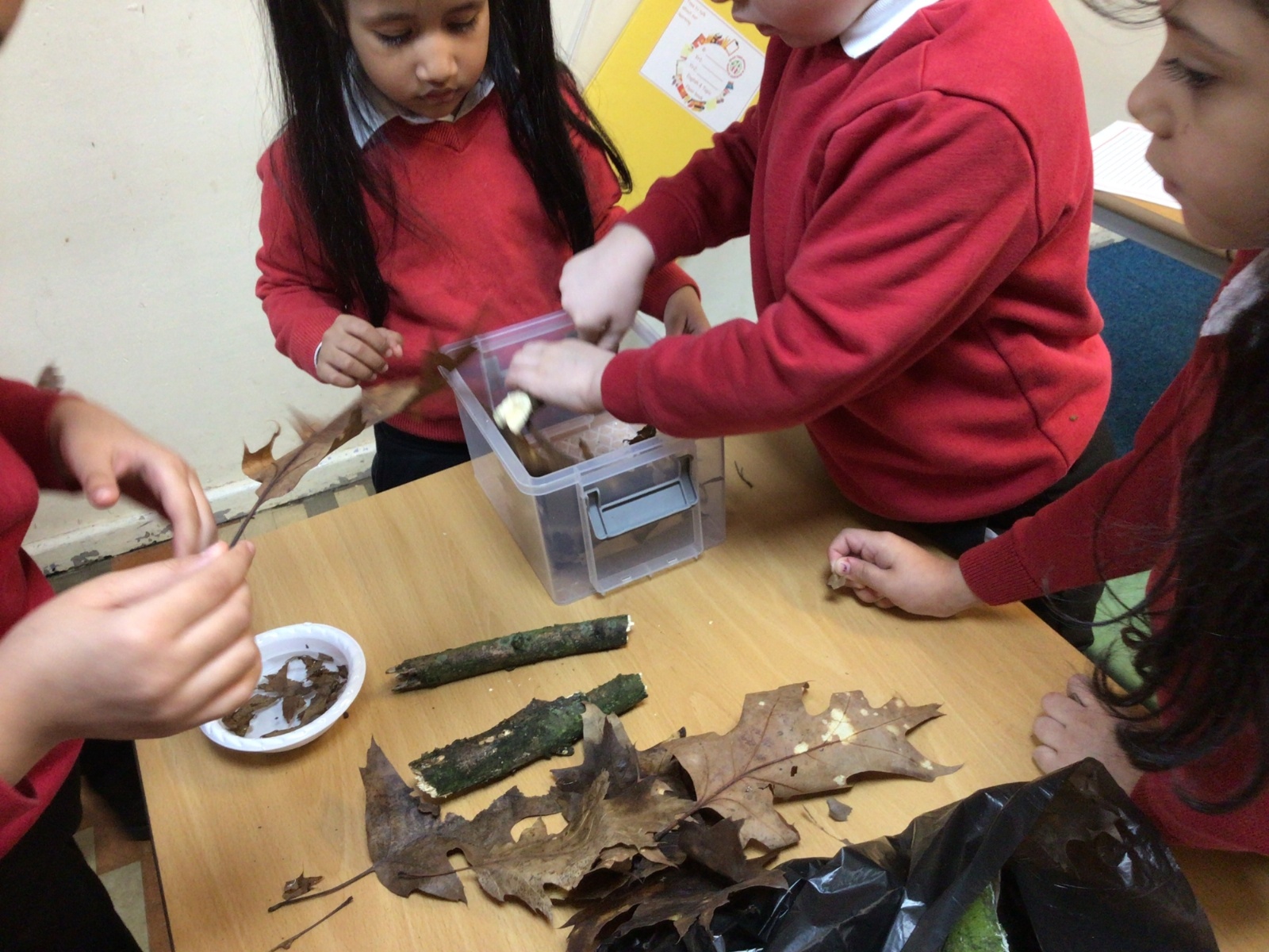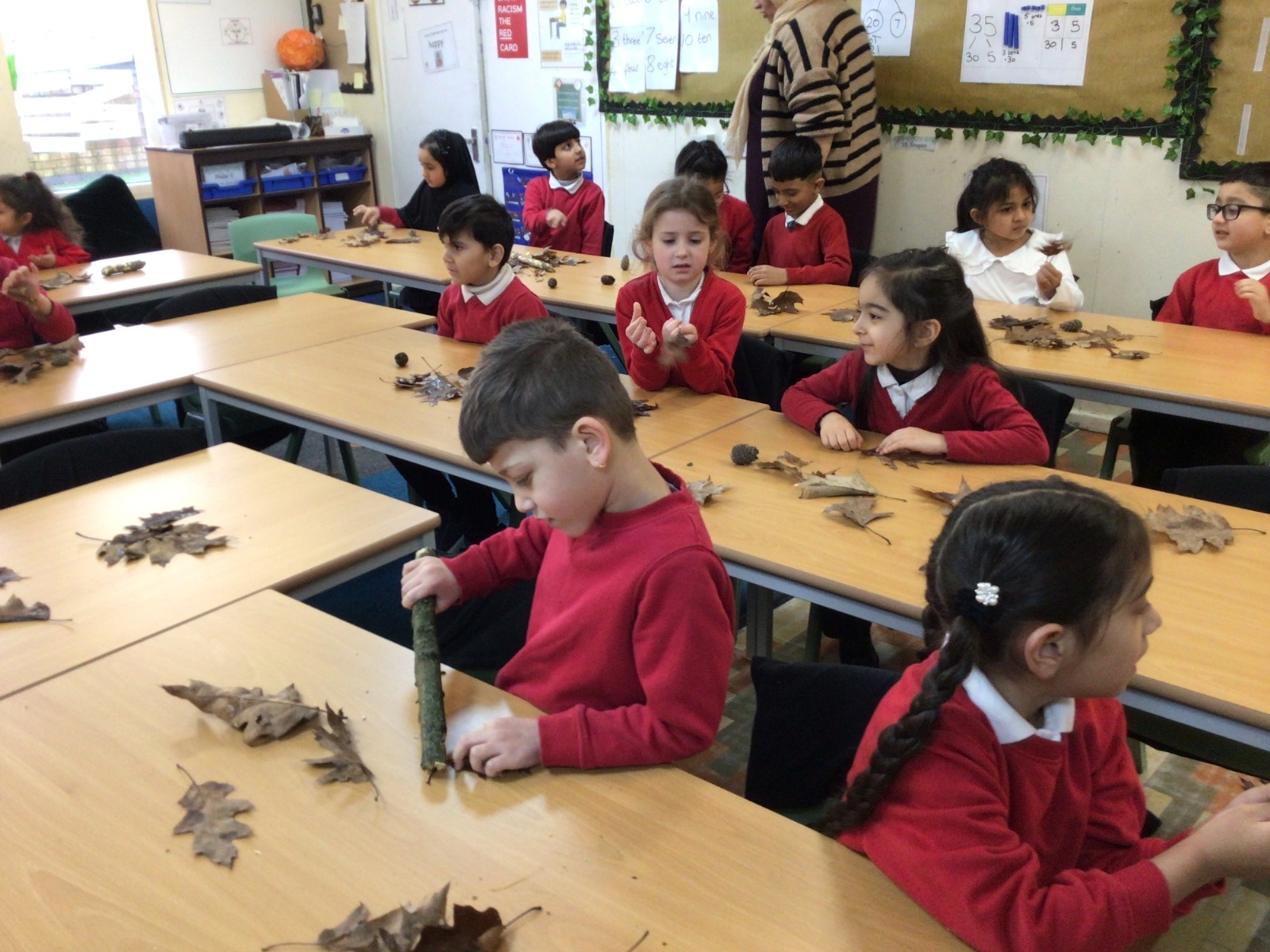 The children explored a variety of items they might find in the woods, feeling and describing the different textures. We made music to send the bad fairies away and worked together to create our own enchanted woodland.
