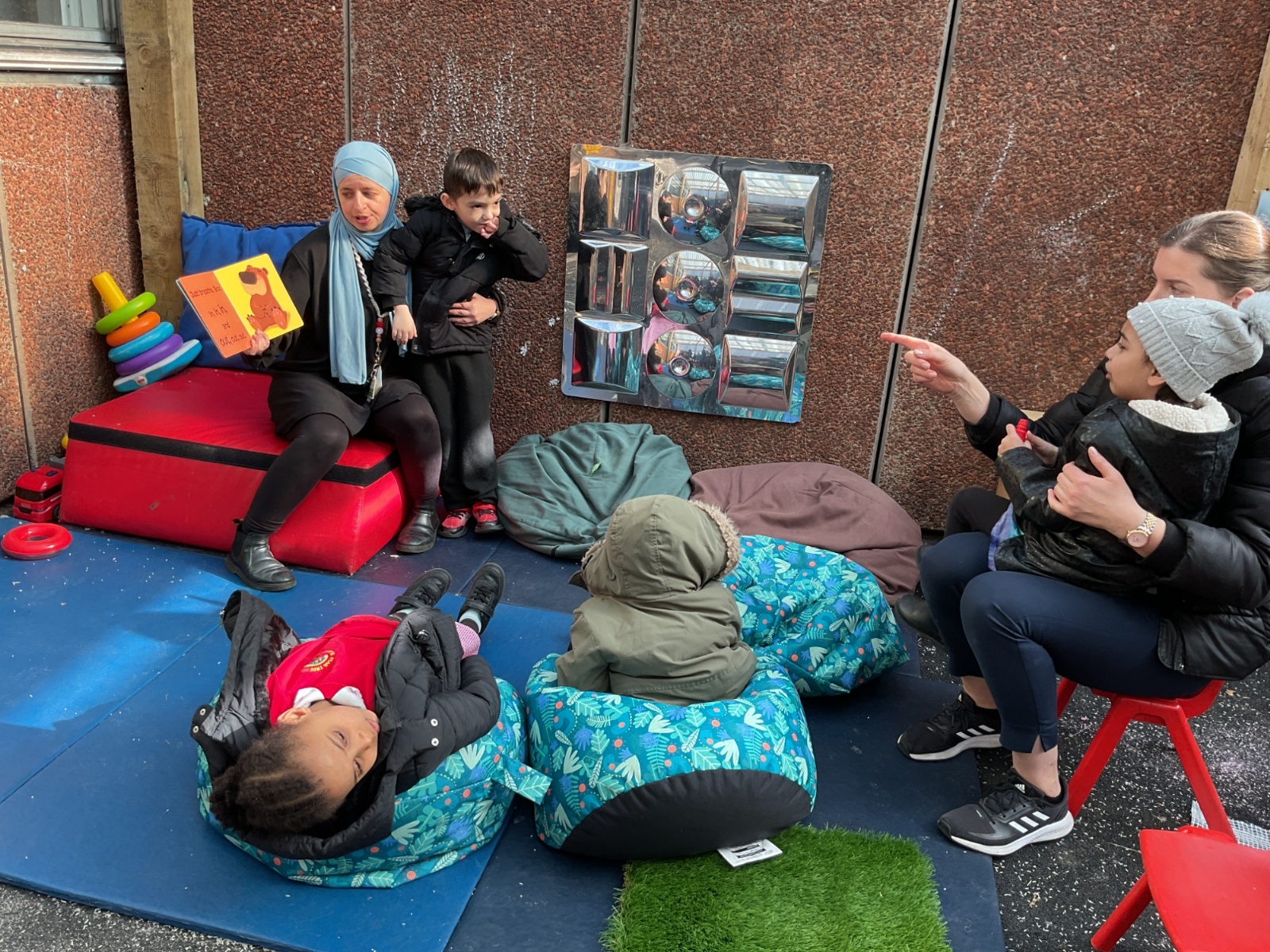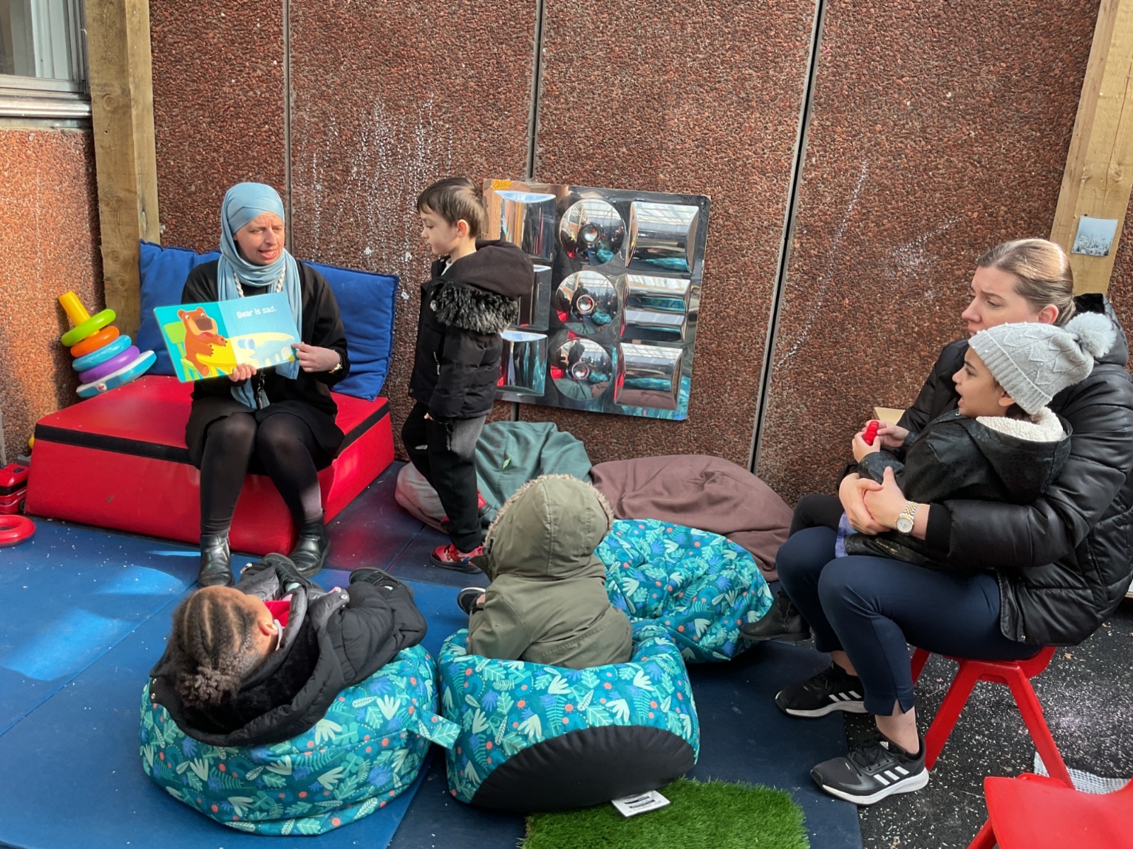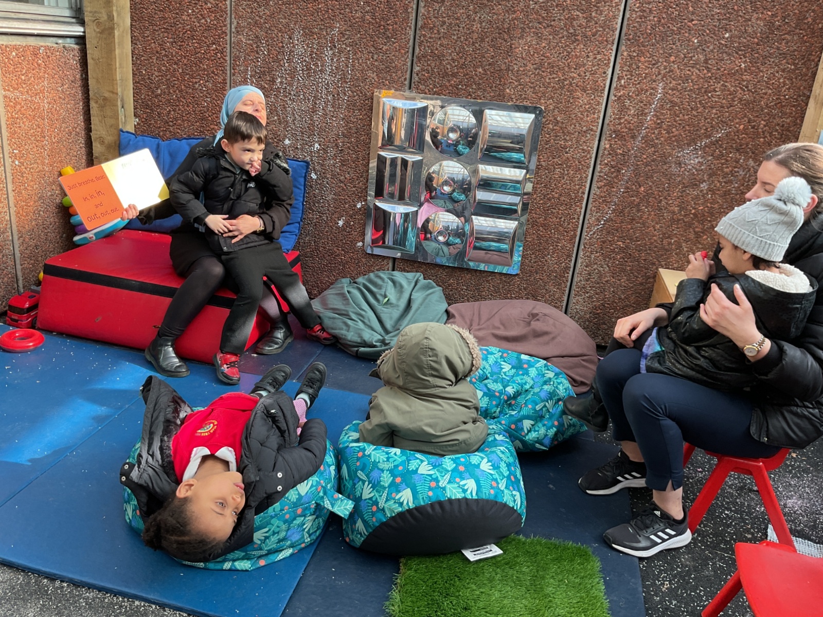 The children listened to the story "Just Breathe Bear"