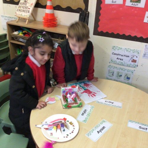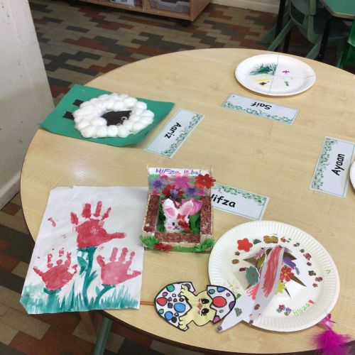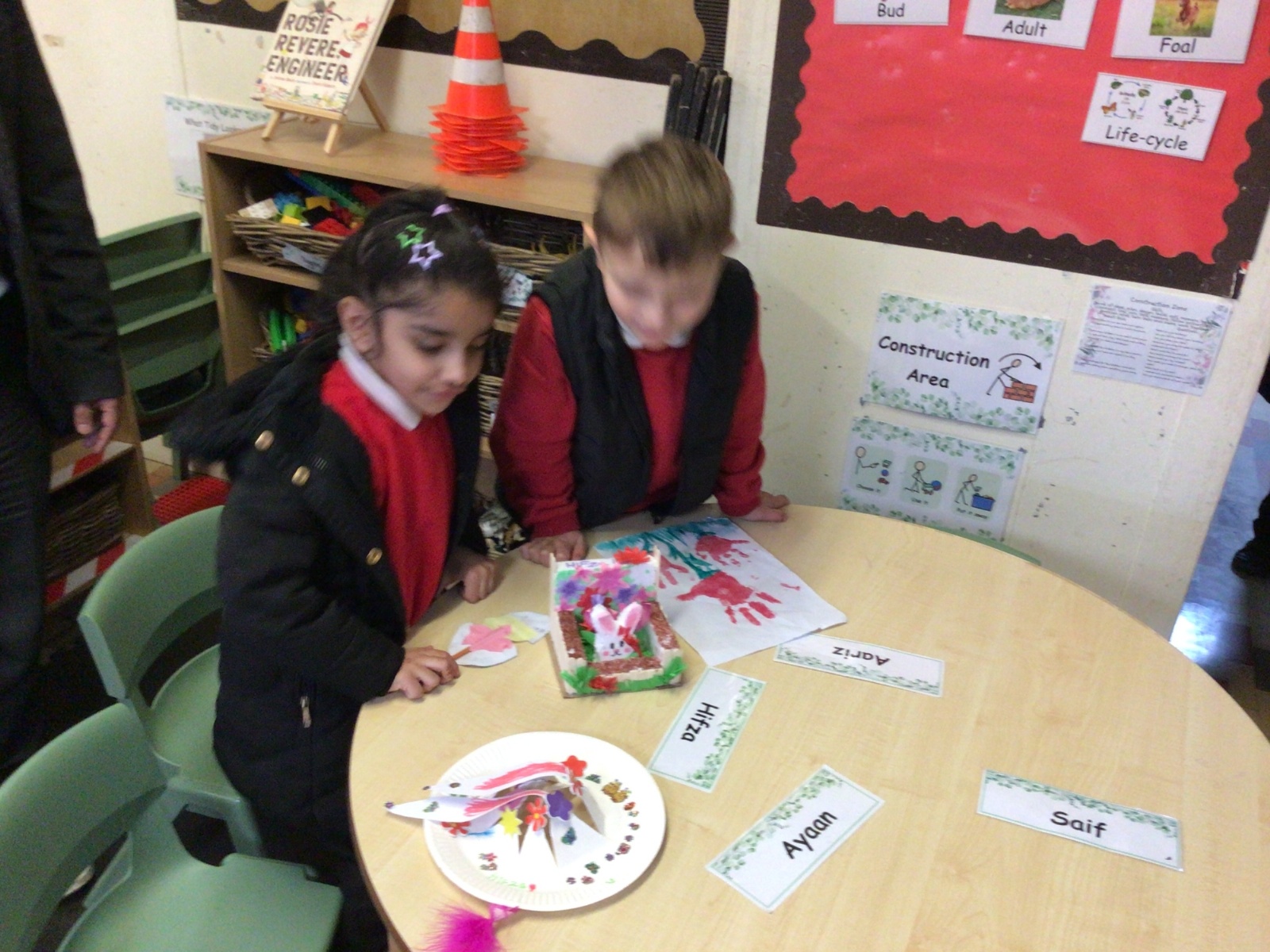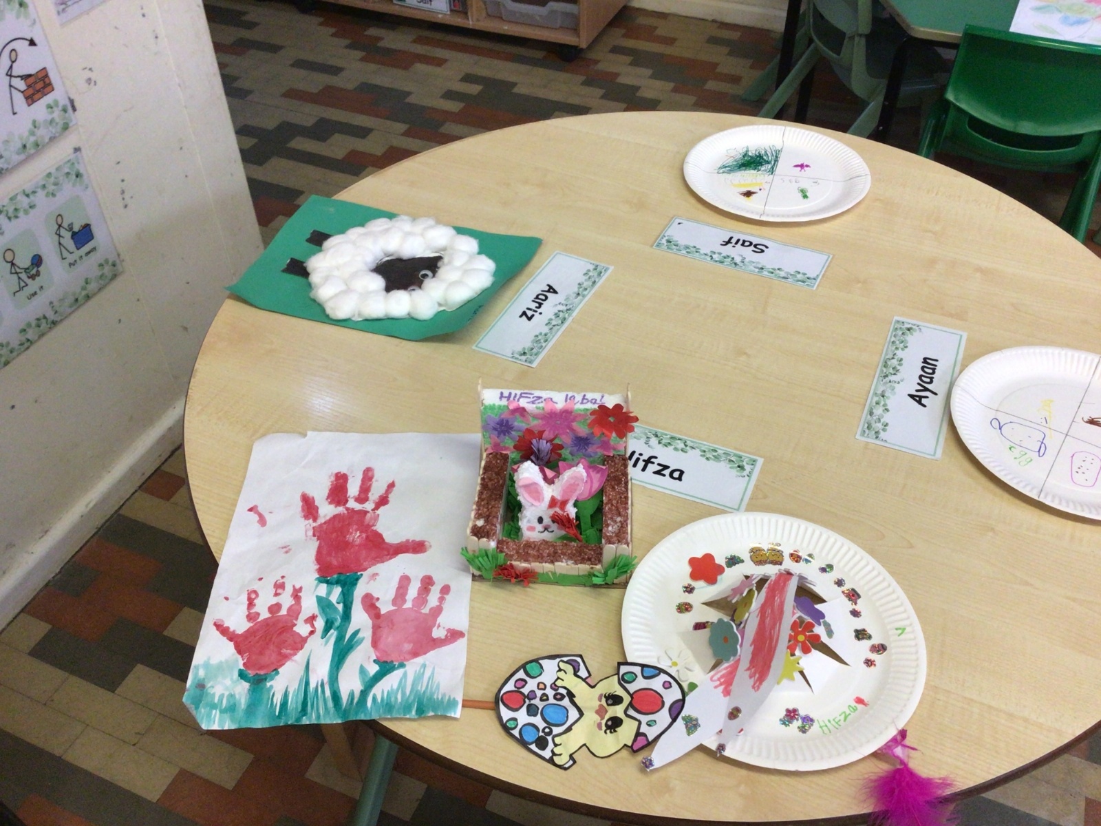 The children showcased their homework projects based on their topic, "Animals and New Life."