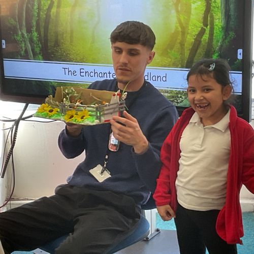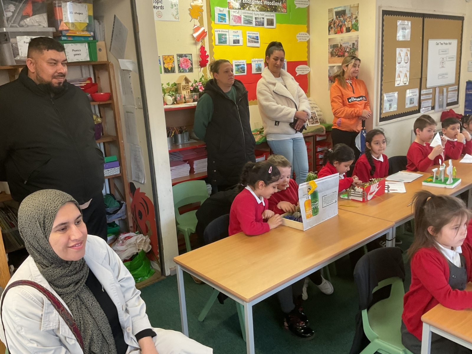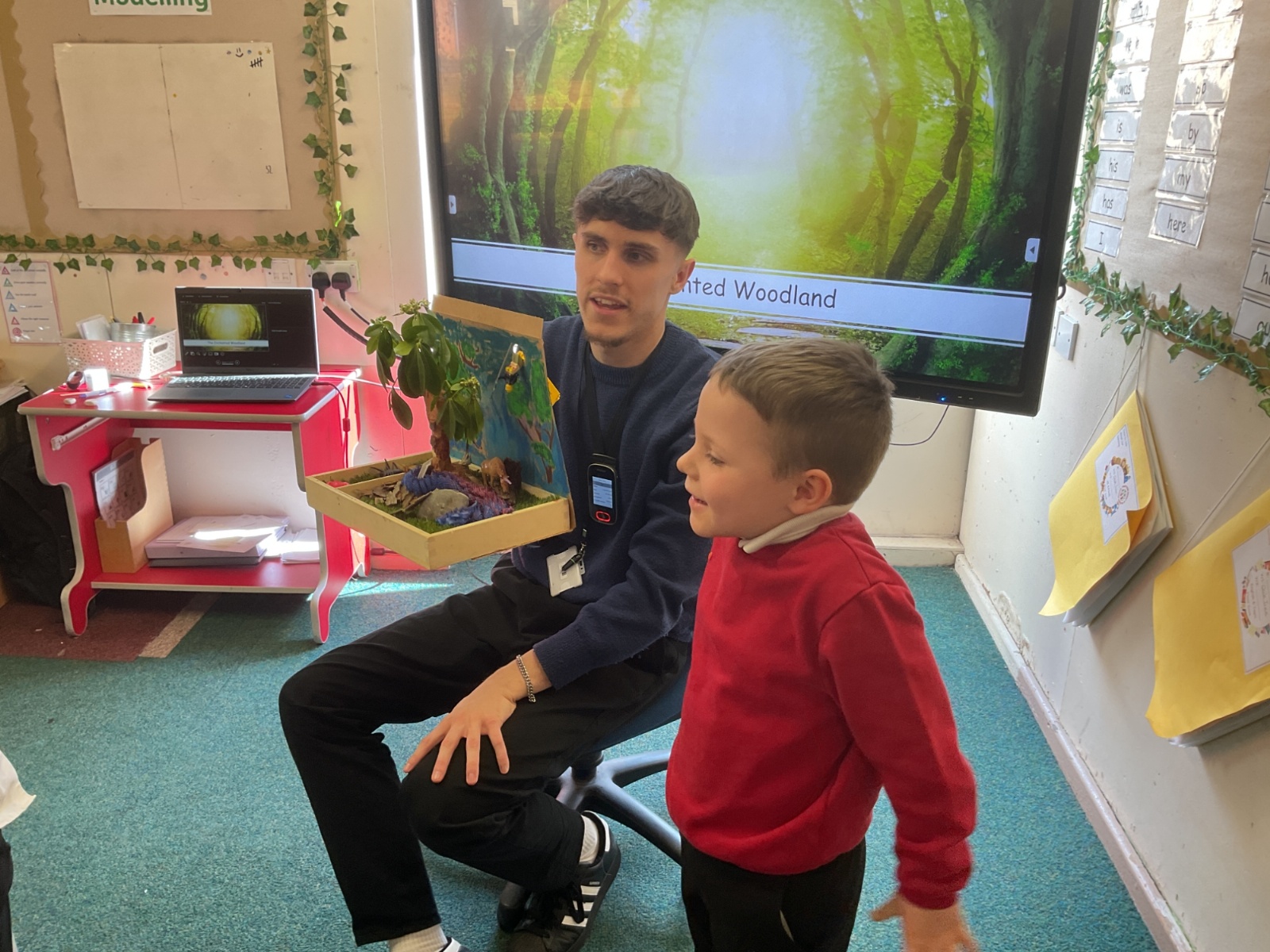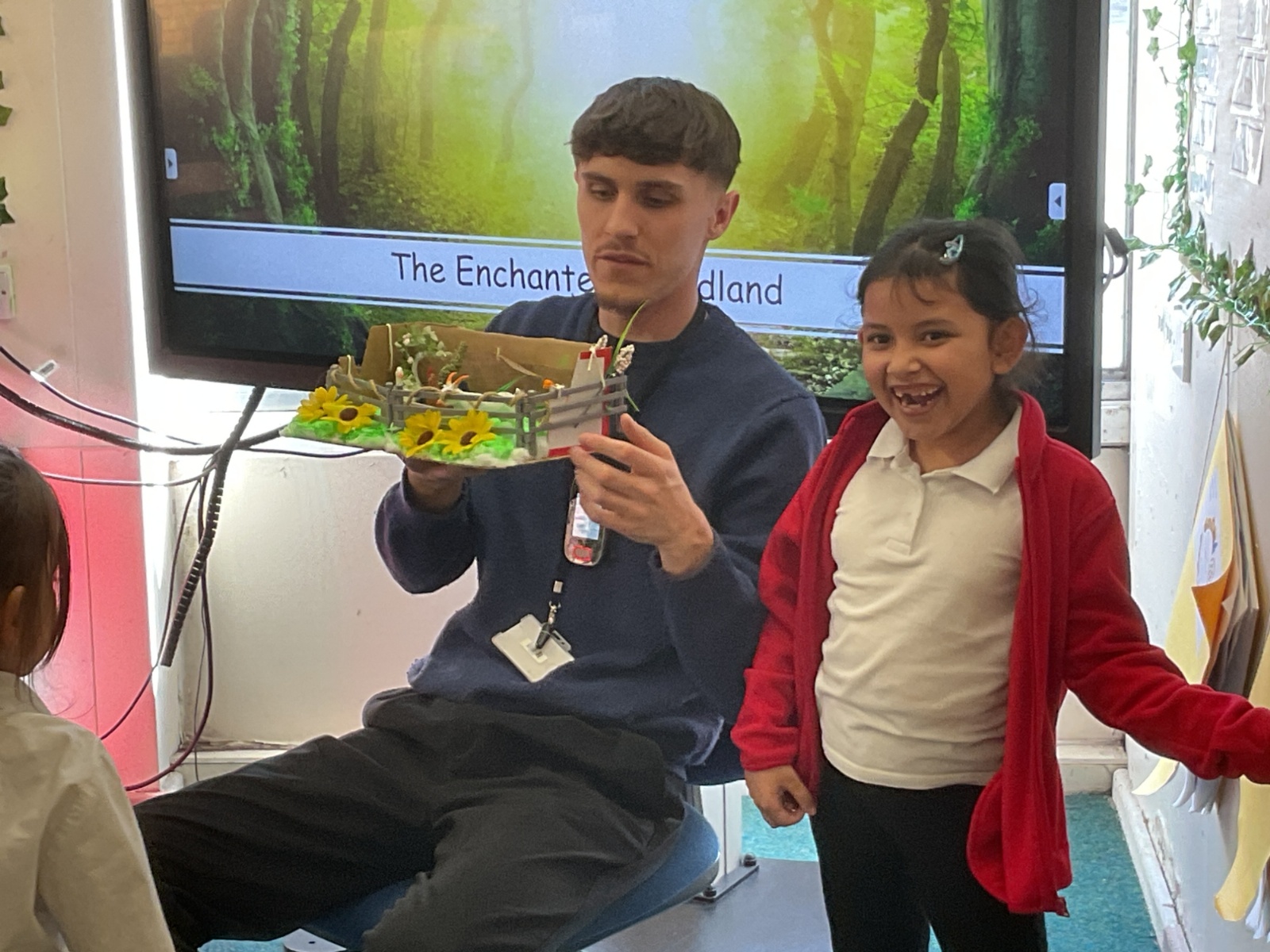 The children showcased their homework projects based on their topic, "The Enchanted Woodland".