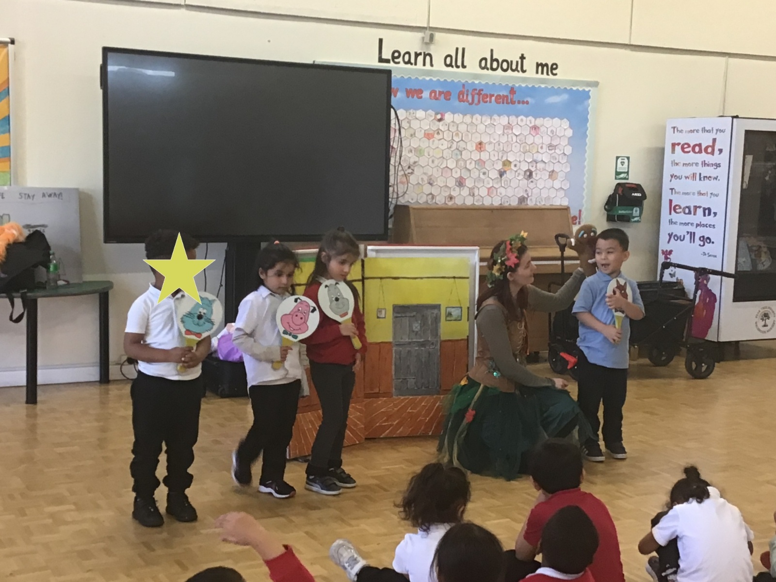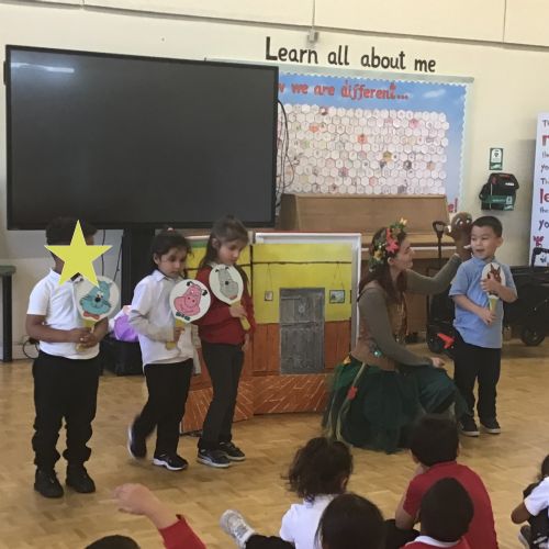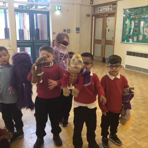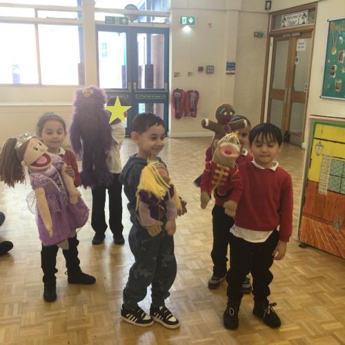 For our WOW day this half term, a theatre group came into school to deliver a puppet fairytale story experience with the children. We heard the fairytales; Little Red Riding Hood, Cinderella, Rumpelstilskin and The Gingerbread man. We also had a go at holding the puppets! In the classroom we completed a Little Red Riding Hood activity and also went on a Gingerbread Hunt!